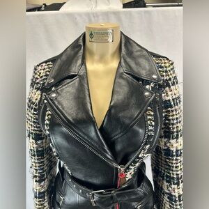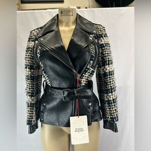 ALEXANDER MCQUEEN Hybrid Leather And Tweed Biker Jacket