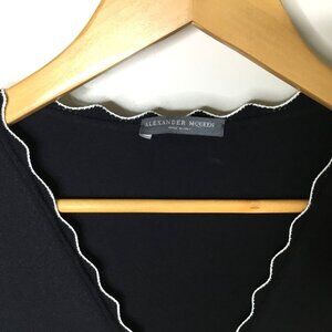 Alexander McQueen dress, McQueen knit dress, black designer dress, scallop trim dress, cutout knit dress, Italian luxury dress, McQueen cocktail dress, McQueen flare dress