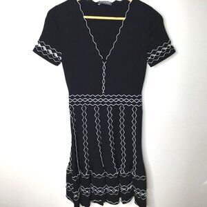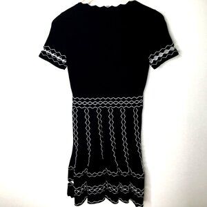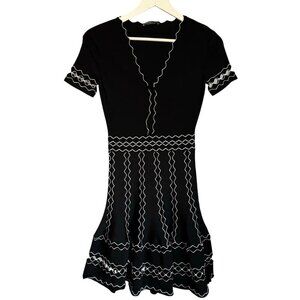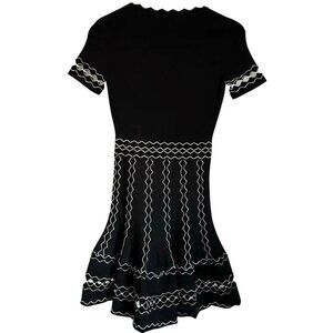 ALEXANDER MCQUEEN Knit Dress Italy S Black White Scallop Cutout Bodycon Cocktail