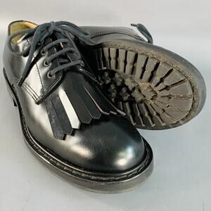 ALEXANDER MCQUEEN Size 10 Black Leather Fringed Tread Sole Lace-Up Shoes