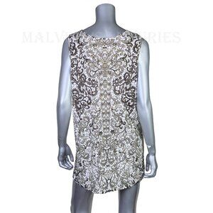 Unique Features: This Alexander McQueen cotton top makes a bold statement with its oversized skull print, a signature motif of the house. The intricate design is set against an ornate contrasting pattern, while the McQueen signature appears near the skull for a distinctive finish. Crafted from soft cotton, the sleeveless silhouette offers an edgy yet effortless look that embodies the brand’s iconic mix of gothic and contemporary style.