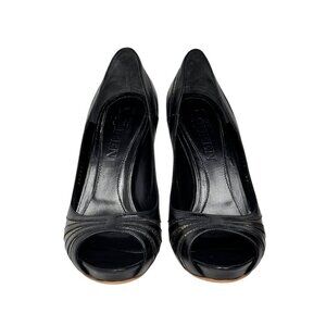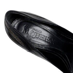 ALEXANDER McQUEEN Peep Toe Heels Sz.9 Black Gold Leather Platform Glam Luxury