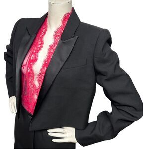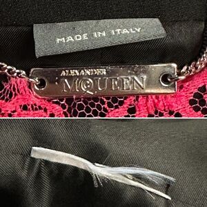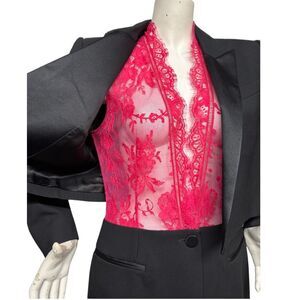 ALEXANDER McQUEEN Trompe L'Oeil Wool Silk Tuxedo Jacket Pink Lace Top S M 6 8