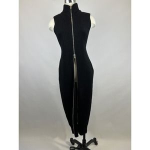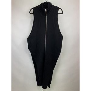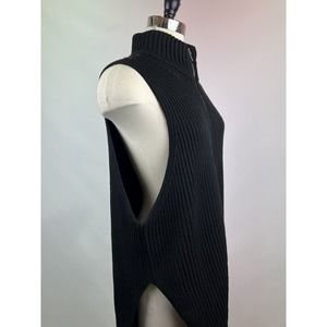 ALEXANDER WANG Black Ribbed Knit Wool Long Side Slit Turtleneck Sweater Vest size large