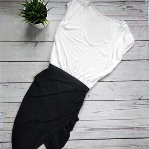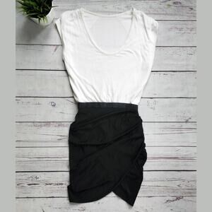ALEXANDER WANG Black and White Sleeveless Tencel Jersey Colorblock Dress S