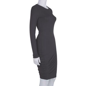 This black asymmetric dress by Alexander Wang is crafted in a body-sculpting silhouette. Made from modal and a spandex blend, it features a round neckline along with long sleeves with slightly ruched details. Balance this dress with bold pumps for a ladylike stance.