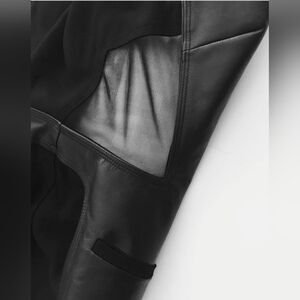 Fabric1: 96% viscose, 4% elastane; fabric2: 100% leather (Calf); fabric3: 100% polyester; lining: 93% silk, 7% spandex