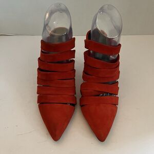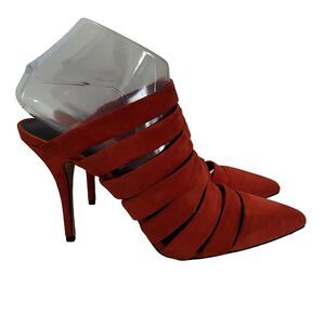 ALEXANDER WANG Red Suede STRAPPY BRITT MULE Sandals Pump Heels SZ 39.5 US 8.5