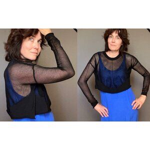 ALEXANDER WANG Sheer Mesh Net crop Top sweater pullover black Sz S