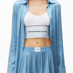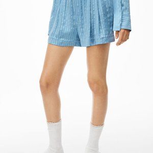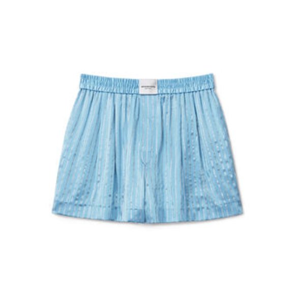 classic boxer shorts with elasticized waist and crystal hotfix pinstripe detailing in light blue silk