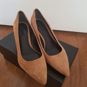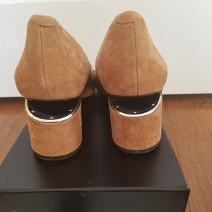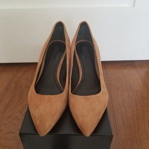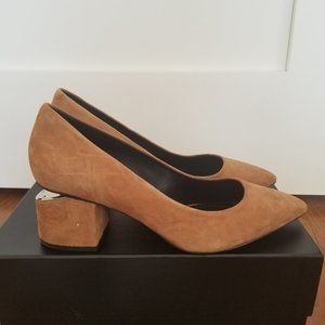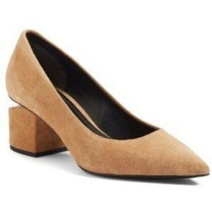 ALEXANDER WANG Simona Tan Suede Cutout Block Heel Pointed Toe Pumps Size 39.5