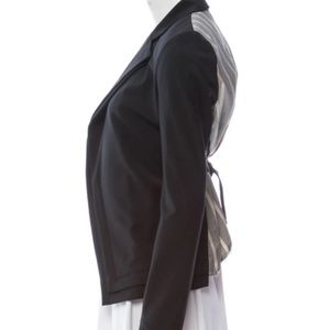 Black and multicolor Alexander Wang blazer with notched lapels, striped panel at back and sash tie at waist.