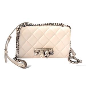 ALEXANDER MCQUEEN White Quilted Leather Jeweled Knuckle Shoulder Bag