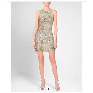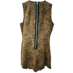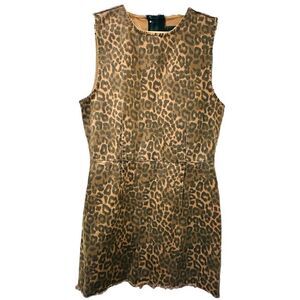 ALEXANDER WANG DENIM Cheetah Leopard Animal Print Cotton Sleeveless Bodycon Distressed Hem Mini Dress Size 8