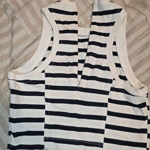Chic and versatile, this striped sleeveless top is perfect for any occasion. The classic black and white design offers a timeless look.