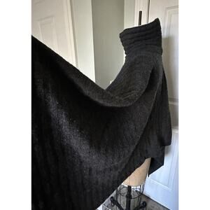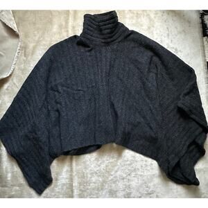 ALEXANDRA BARTLETT 100% Wool Turtleneck Sweater Poncho Top Dark Gray Charcoal.