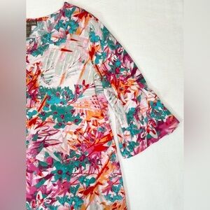 ALEXANDRA+OAK NWT Pink Coral Combo Printed Shift Dress 3/4 Gentle Bell Sleeve XL