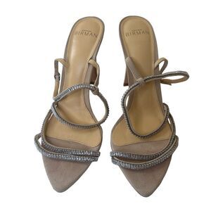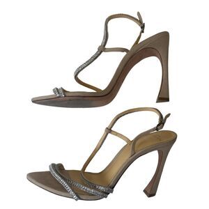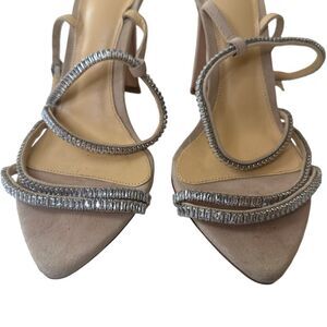 ALEXANDRE BIRMAN Biege Embellished Padded Alana Pointed Toe Flare Heeled Shoe is gentle worn. Size: 38 1/2 (38.5)