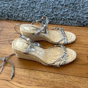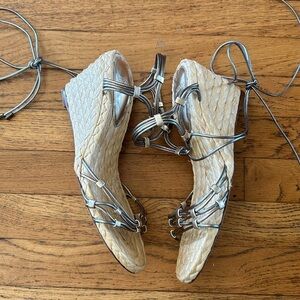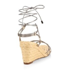 ALEXANDRE BIRMAN Leona Ankle-Wrap Metallic Leather Espadrille Wedge Sandal 38.5