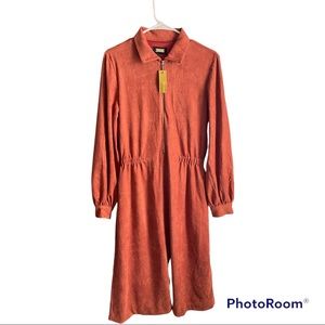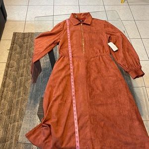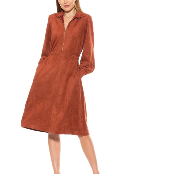 The Hailey collar fit and flare suede dress is a must have classic style for your wardrobe. This dress features front exposed zipper with collar, long blouson sleeves, full skirt with pockets, and is partially lined.