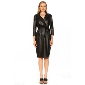 ALEXIA ADMOR Black Jacqueline Edgy Executive Vegan Leather Sheath Dress Size: 8