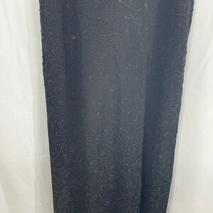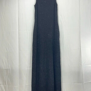ALEXIA ADMOR Black Stretch Knit HIGH NECK Sleeveless BEADED Maxi Bodycon Dress M