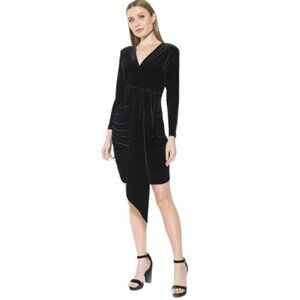 ALEXIA ADMOR Juliana Velvet Ruched Drape Mini Dress in Black SZ L