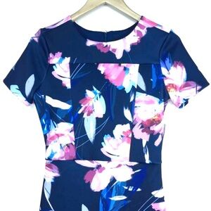 ALEXIA ADMOR New York Green Blue Floral Print Sheath Cocktail Dress