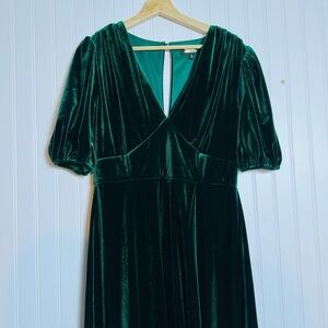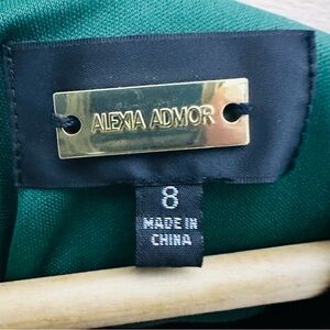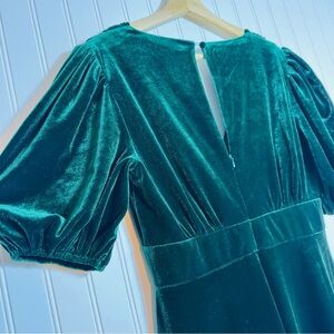 ALEXIA ADMOR Nola V-Neck Puff Sleeve Fit & Flare Drees Deep Green Size 8 Unlined