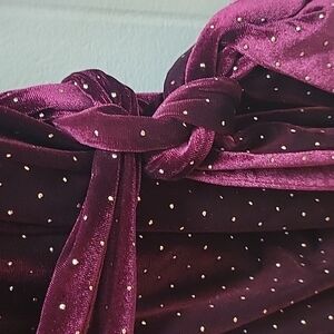 Crafted in luxe velvet, this wrap dress from Alexia Admor is elegantly studded for added shimmer and shine. The Amelia wrap dress is made from a cozy soft stretch knit that wraps the curves with comfort. Tied together with a sash waist, this style falls to an understated straight skirt.