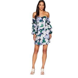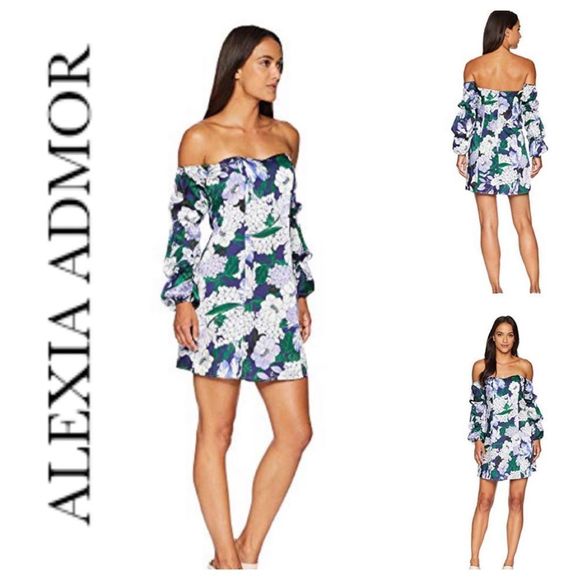Alexia Admor Tropical off shoulder dress. Polyester knot flaunts a floral design. Off the shoulder design, long sleeve, back zipper closure.