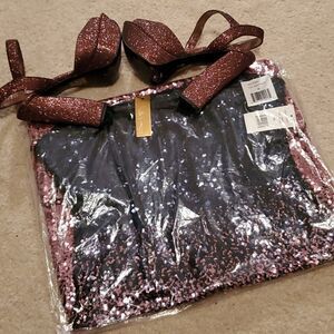 - Design Details: Naomi Sheath Dress in Navy Multicolor with Ombré Sequin Design and Vented Back Hem