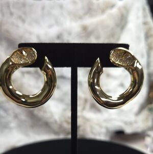 🆕 ALEXIS BITTAR Brilliant Bamboo Encrusted Gold Hoop Earrings-NEW WITH POUCH!