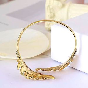 Signed Alexis Bittar Bypass Crystal Gold Leaf Cuff Bangle Bracelet in Gold