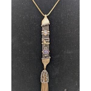ALEXIS BITTAR RHINESTONE TASSEL NECKLACE WITH MOONSTONE, AMETHYST, CRYSTALS 28” in excellent condition!!!