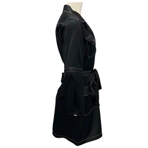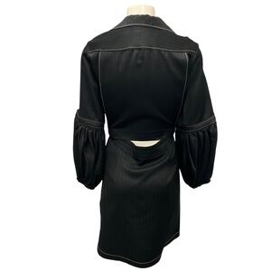 Alexis Black Long Sleeved Button Down Satin Mini Dress with Belt