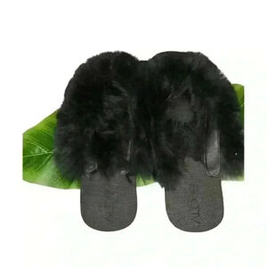 ALEXIS Black Soft Faux Fur Flip Flops Sandals