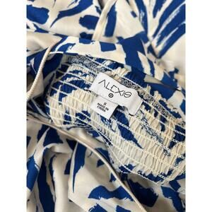 ALEXIS Blue Botanical Tie Strap Asymmetrical Hem Dress SIZE SM asymmetrical hem midi length blue/white floral