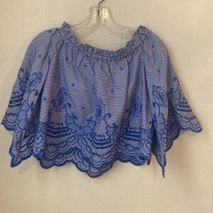 ALEXIS Blue/White Gingham Off Shoulder Embroidered Eilis Top