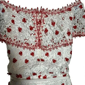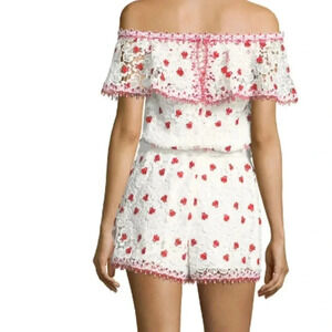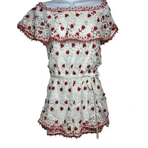 ALEXIS Clive Off the Shoulder Lace Romper Red White One-Piece Size XS