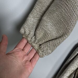ALEXIS Crinkle Drop Waist Mini Dress Small Gold Party Holiday Tie Balloon Sleeve