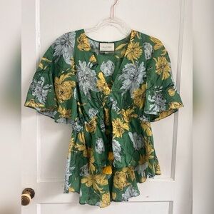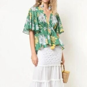 ALEXIS DAYAL FLORAL PRINT SHORT SLEEVE HIGH LOW PEPLUM TOP GREEN YELLOW $338 XS