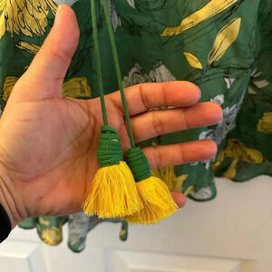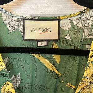 ALEXIS DAYAL FLORAL PRINT SHORT-SLEEVE HIGH-LOW PEPLUM TOP GREEN & YELLOW