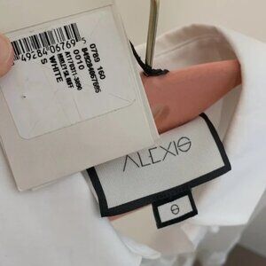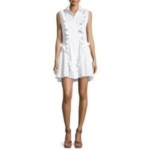 Alexis White Ruffled Dress Spread Collar With Front Button Closures And Long Sleeves Flared Skirt With Loose Fitting Silhouette And Thigh Length Cut 96% Cotton, 4% Elastane, Dry Clean Only