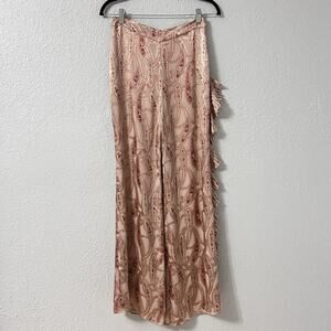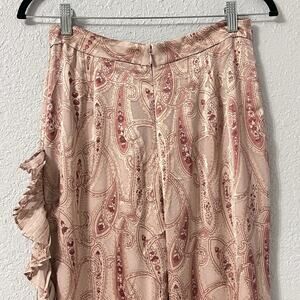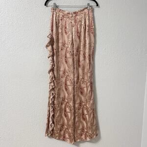 ALEXIS Izami Paisley-Print Ruffle SatinPants Pink Size XS Boho Romantic Eclectic