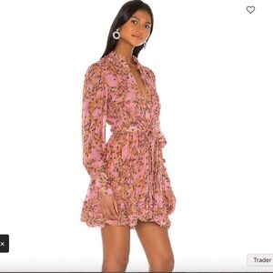 ALEXIS Karina Pink Floral Dress Ruffles Long Sheer Sleeves Size Small