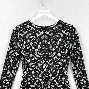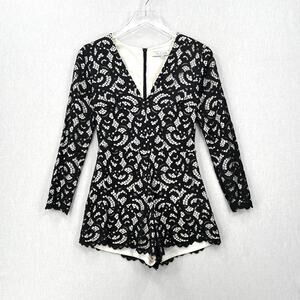 ALEXIS Lace Romper Womens XS Black Off White Long Sleeve Short Party Cocktail