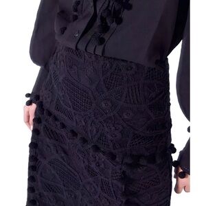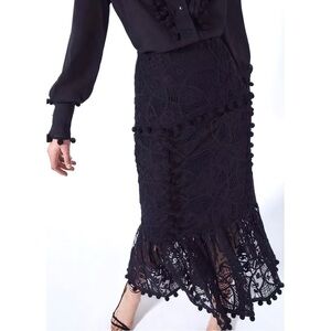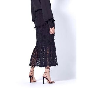 ALEXIS Lace-Embroidered Midi Black Femka Skirt