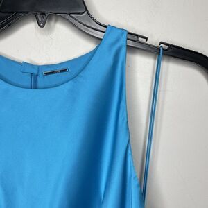 Blue satin sleeveless a-line maxi with cutouts and tie waist