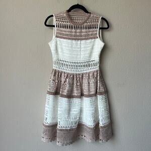 ALEXIS Melania White Beige Lace Tiered Mini Dress Size S